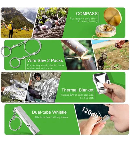 No importa si estás acampando, pescando, cazando o en una situación inesperada: el Kit de Supervivencia Todo en Uno fue diseñado para darte seguridad, confianza y control en cualquier momento.